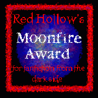 The Moonfire Award is for scary fanfiction. Doesn't matter what it's for; just has to be fairly good--Gabriel Knight, the Night World, the Vampire Diaries, Scream; anything is welcome for submission.
